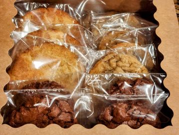 Cookies are available individually or in packs of 6 or 12. I currently offer Chocolate Chip, Snickerdoodle, Mexican Wedding Cakes, Flourless Peanut Butter, Flourless Peanut Butter with Cinnamon Maple Glaze, Oatmeal Raisin, Ultimate Chocolate Chip, Death by Chocolate, and Cornbread with Honey Glaze. Others options are available upon request. Please contact me for exact pricing.