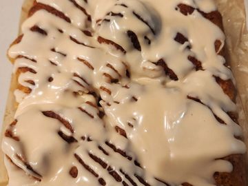 Soft and fluffy focaccia with a cinnamon brown sugar swirl, topped with even more cinnamon and brown sugar, plus melted butter, and baked until golden brown all over. This decadent focaccia is like a cinnamon roll, but better! Topped with a vanilla sugar glaze. Sold in small, medium, or half-sheet pan sizes. Icing can be packaged separately if you plan to reheat the focaccia before serving.
