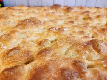 Crispy on the outside and pillowy soft on the inside, this focaccia makes an excellent side with pasta dishes or you can slice it in half and use it as a base for your sandwich. This also makes a fantastic base for homemade pizza. Please get in touch with me for exact pricing and available flavors. Also available baked in a 9x13 pan for thicker focaccia (half sheet pan price)